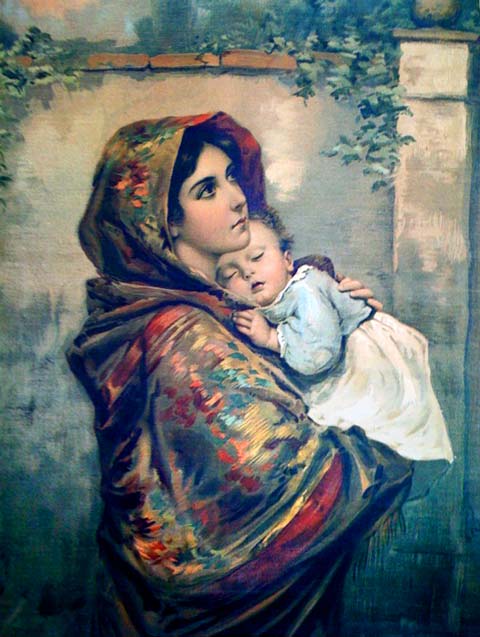Sister Angela Marie Bovo was an American nun of Italian descent. During the summer of 1984, she obtained permission from her convent to travel to Venice to learn more about her family. Her mother, born in Venice, had since died in California in 1972. She lived in America for almost 70 years, having immigrated from Venice in 1906. Now, about 12 years after her mother's passing, Sister Angela spent some time in her mother's old Italian home. During a visit there, the nun's aunt removed a small picture from the wall. The lovely painting, entitled "The Madonna of the Street", depicted the Blessed Virgin holding her sleeping Son. Showing the image with pleasure, the aunt said, "This is your mother." Sister Angela agreed, repeating what she had been taught from childhood about Our Lady, "Yes. She is everyone's Mother." Not expecting this response, the aunt clarified, "But this is your earthly mother!" Then, Sr. Angela understood what her aunt meant. The girl in the picture was her Italian mother! In 1984, when modern photography had been widespread for decades… it was a sweet and interesting revelation for the nun… to see before her a vintage, world famous portrait of her mother, beautifully modeling the Madonna of the Street. The young model, Angela Cian, was 11 years old when called upon to pose for the artist Roberto Ferruzzi. The large sleeping baby in her arms was her little brother, Sister Angela's uncle. What a sweet touch of God's Providence that this girl painted as the Blessed Mother would later become a mother herself, giving birth to 10 children. Upon returning to the United States, Sr. Angela shared the discovery with the rest of her family. Excited and curious, the Bovo family reached out to the surviving nephew of the deceased artist. Upon their request, Ferruccio Ferruzzi Balbi searched his uncle’s old log book and did indeed verify the identification of Mrs. Bovo - then little Angela Cian. So many people over the centuries have spent long hours of their lives standing still in front of an artist, so that he could produce more realistic and beautiful works of art to inspire generations to come. Numerous artists in history are most famous for some religious work. God’s gift to them has done a lot of good for many people and it makes sense that they would be well known for it. But their unknown models, while perhaps not as talented as the artists, were still crucial in the making of these holy images. Yet, in God’s Providence, the name of a simple 11 year old girl, posing as Our Lady, has been passed down to us. The Madonna of the Street is a lovely image which has touched many hearts. Angela Cian Bovo is a real-life reminder that every single one of us can do good, however complex or simple our role may be. |